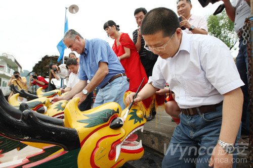 瀏覽量:7159 6月9日下午,新安集團(tuán)兩年一屆的新安龍舟賽在新安江上激情上演。本屆龍舟賽共有農(nóng)化事業(yè)部、農(nóng)藥廠、化工二廠、有機(jī)硅事業(yè)部、有機(jī)硅廠、硅酮密封膠廠、熱電廠、集團(tuán)機(jī)關(guān)聯(lián)隊(duì)、采購(gòu)中心、新安物流、新安包裝、新安邁圖、開(kāi)化合成、開(kāi)化元通、鎮(zhèn)江江南、泰興興安等16支代表隊(duì)參賽。經(jīng)過(guò)激烈角逐,熱電廠代表隊(duì)獲得了一等獎(jiǎng);開(kāi)化元通和新安物流代表隊(duì)獲得了二等獎(jiǎng);有機(jī)硅廠、開(kāi)化合成、集團(tuán)機(jī)關(guān)三支代表隊(duì)獲得了三等獎(jiǎng)。圖為在龍舟賽前的開(kāi)幕式上,集團(tuán)領(lǐng)導(dǎo)為龍舟點(diǎn)睛。